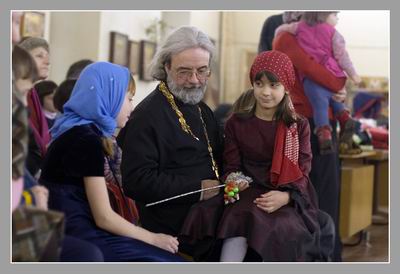 В славянском есть красота и ритм, которые очень трудно перевести. В богослужении есть места, которые непонятны только из-за этого, например, некоторые места в каноне Андрея Критского. В одном месте говорится о «тристатах». Что значит «тристаты» для людей, которые стоят? — ничего не значит. В точном переводе это значит «тройка». Сказать в богослужебном тексте «тройка» не очень удобно. Я слово «тристаты» всегда заменял словом «колесницы»: и всякий понимает, и тексту не обидно. Другое место есть, которое ничего не значит просто, потому что оно переведено точно с греческого языка в порядке греческих слов, только на греческом языке окончатся непохожие, тоща как на русском языке одни и те же, и просто ничего не понять. Я на этих словах написал номера и, когда читаю вслух, читаю: раз-два-три-четыре-пять-шесть-семь, и вдруг оказалось, что понятно, потому что в таком порядке их можно понять. А уж говоря о том, как можно просто ничего не понять и умилиться — тоже, знаете, есть анекдот русский. Старушка говорит батюшке: «Знаете, меня всегда так трогает, что в православной церкви и зверей поминают». Батя удивился: «А каких там зверей поминают?» — «Ну как же! На каждой всенощной я стою и плачу от умиления, когда доходит до слов: "я крокодила пред Тобою"» (знаете, поют: «Да исправится молитва моя, яко кадило пред Тобою»). Старушка-то умилялась, это ей на пользу шло в каком-то смысле, по все-таки не обязательно свое благочестие выражать в такой форме. И есть такие места, которые просто непонятны, которые надо переводить, переделывать незаметно. Не обязательно весь текст переделать, а заменить одно слово или как-то его переместить, чтобы оно доходило бы до людей. А вы что скажете? Я сыну просто сказала: Саша, ты знаешь, что я утром и вечером читаю молитвы, хочешь, тоже читай. Давай, первое время ты со мной будешь просто стоять. Но он был еще маленький. И я брала самые простейшие молитвы, «Отче наш», «Богородице Дево», из вечерних конечные «В руки Твои предаю дух мой». Сначала стоял просто слушал, потом стал со мной повторять. Ему было трудно воспринимать ни славянском, но потихоньку выучил «Отче наш». Но он обычно говорит: Мала, давай вместе. Первое время он только со мной, и даже читал при мне. А потом, когда, я смотрю, это вошло в него, даже если я утром не успеваю, я ему говорю: Саша, ты без меня прочитай «Отче наш». И вообще, говорю, не обязательно, но лучше, когда ты утром или вечером встаешь, лучше стать перед образом, собраться, что ты предстал перед Богом, и отдать Ему все, что у тебя внутри. А если у тебя что-то другое, ты не можешь, скажем, в этот момент стоять перед образом, то просто в душе помолиться. Потом и в течение дня можно вспоминать о молитве, просто «Господи, помилуй» сказать. А потом — я вечером встала на молитву, он один раз пришел: можно я постою? И я стала читать все молитвы, как обычно. И ему сказали: если устанешь, можешь не стоять до конца, постой сколько тебе хочется. А сама думала: или он хочет мне угодить? Не знаю. Последний раз, как–то утром на утренние молитвы я стала, говорю: хочешь, постой со мной. Он тоже стоял. Обычно, когда он столп, он сам читает «Отче наш», то, что он знает. И когда я закончила, я спросила. Саша, а ты понял все, что я читала? — Нет, не все... Постепенно, хочется, конечно, чтобы он знал, но не хочется насильно... Насильно лучше ничего не внедрять, пото